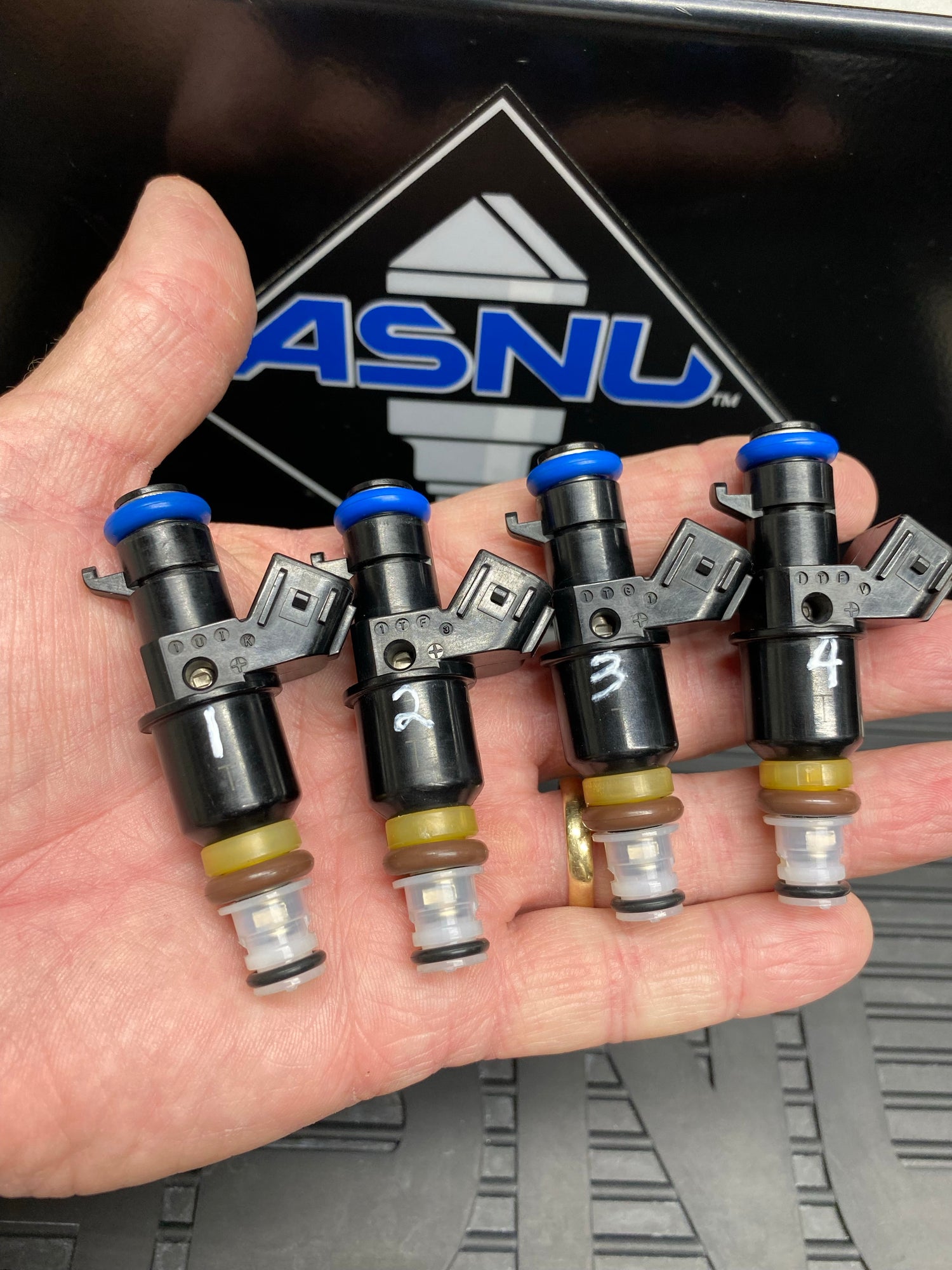 These injectors have been tested, cleaned, flowed, and new seals, spacers, and filter baskets installed. They were flowed on our ASNU Classic GDI machine and come with flow sheet. These are factory “stock” injectors.